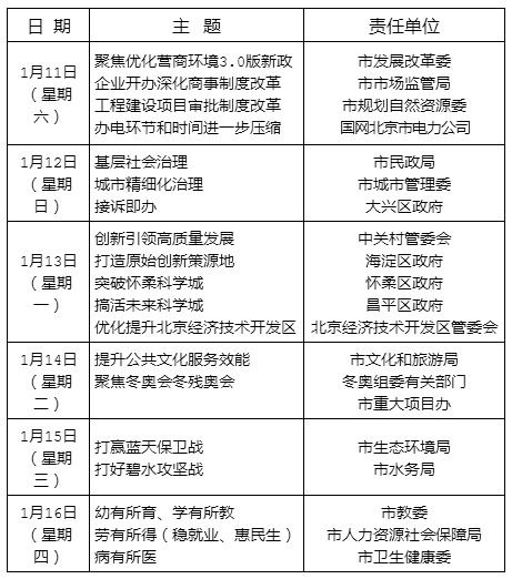 由市政务服务局主办的“市民对话一把手”大型全媒体直播访谈节目将于11日晚将与广大市民见面。届时,20位委办局、区政府和企业“一把手”将与广大市民沟通对话。 据悉,本次节目以“完善治理体系,提高治理能力”为主题,聚焦推动首都经济高质量发展、提高超大城市治理水平、全国科技创新中心建设、全国文化中心建设和冬奥会冬残奥会筹办、生态环境建设、着力保障和改善民生等领域,将邀请市发展改革委、市教委、中关村管委会、大兴区、国网北京市电力公司等20位委办局、区政府和企业“一把手”与广大市民沟通对话。 1月11日至1月16日,每天19时30分到21时,连续6天在BTV新闻频道,北京城市广播FM107.3、AM1026频道,首都之窗、“北京时间”和北京发布同步直播。 节目安排表 ![]()