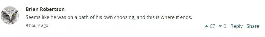 另一位名叫网民Brian Roberton的加拿大网民表示,他自己选择了这条路,那这就会是他的下场。