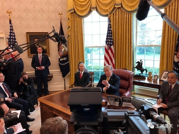 2018年12月1日,在阿根廷首都布宜诺斯艾利斯,中美两国元首举行了一次历史性的晚餐会晤,两国元首指示双方经贸团队加紧磋商,达成协议,取消贸易摩擦以来加征的关税,推动双边经贸关系尽快回到正常轨道,实现双赢。 在两国元首达成的重要共识指引下,双方团队相向而行,连续进行了五轮高级别磋商。谭主梳理了一下这五轮高级别磋商成果稿中的关键词,看看有什么变化? 第五轮 取得重要阶段性进展 第六轮 就主要问题达成原则共识 第七轮 取得实质性进展 第八轮 双方讨论了协议有关文本,并取得新的进展 第九轮 在经贸协议文本等重要问题上达成了新的共识 无论是罕见的磋商频率,还是不断扩大的共识范围,都让人们有理由对中美经贸磋商前景抱乐观态度。 4月5日下午,美国总统特朗普再次会见刘鹤副总理。从会场传出的画面,很多人关注到一个细节:刘副总理这次的座位,从之前特朗普的对面调整到了旁边;这个小小的位移,很多人解读为美方对谈判对手显示出了越来越多的尊敬和重视。
