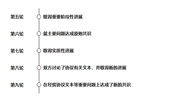 从时间轴上的疏密程度,可以很清楚地看到:磋商的节奏越来越快。 这个磋商节奏变化的关键转折点在哪里?很明显,去年12月1日中美元首阿根廷会晤之后,双方磋商频率不断加快。