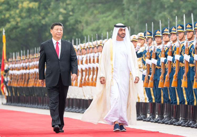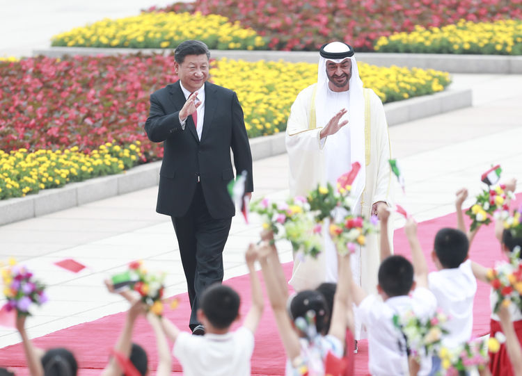 (一)特殊时间节点的会晤 7月22日上午,北京人民大会堂东门外广场,天气酷热。 习近平主席举行仪式,欢迎一位远道而来的贵客——阿拉伯联合酋长国阿布扎比王储穆罕默德·本·扎耶德·阿勒纳哈扬。 应习近平主席邀请,穆罕默德王储于21日至23日对中国进行国事访问。 一年前的2018年7月,习近平主席应邀对阿联酋进行国事访问,阿方用“超高规格的外交礼遇”,予以热情接待。 一年后的今天,穆罕默德王储访华。除了上午的欢迎仪式、正式会谈、双边合作文本交换仪式等,22日晚,习近平主席还再次同穆罕默德王储会面。 “今年是新中国成立70周年,也是中阿建交35周年,具有承前启后的特殊意义。” 让我们通过新华社记者现场拍摄的照片,感受欢迎仪式的现场氛围——