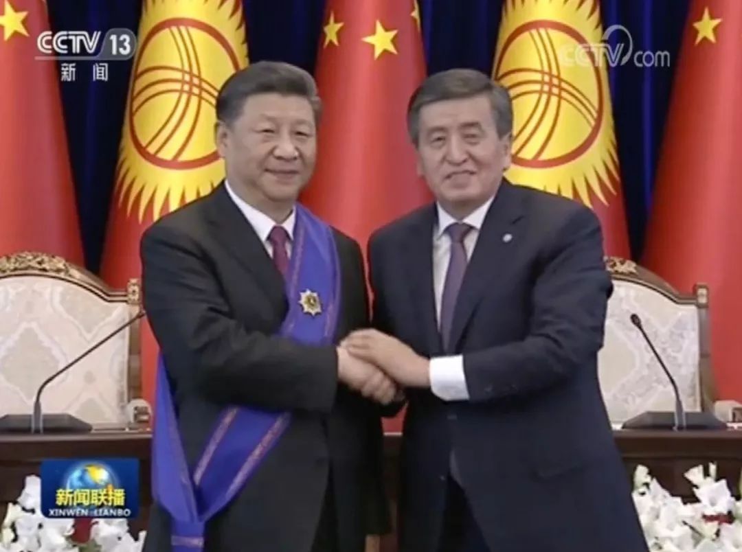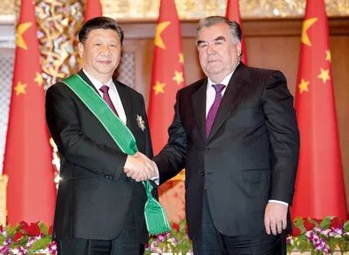 △6月13日,习近平被授予“玛纳斯”一级勋章。 6月14日,习近平主席抵达塔吉克斯坦首都杜尚别时,塔总统拉赫蒙也亲自前往机场迎接。期间,习近平被授予塔吉克斯坦国家最高勋章“王冠勋章”。