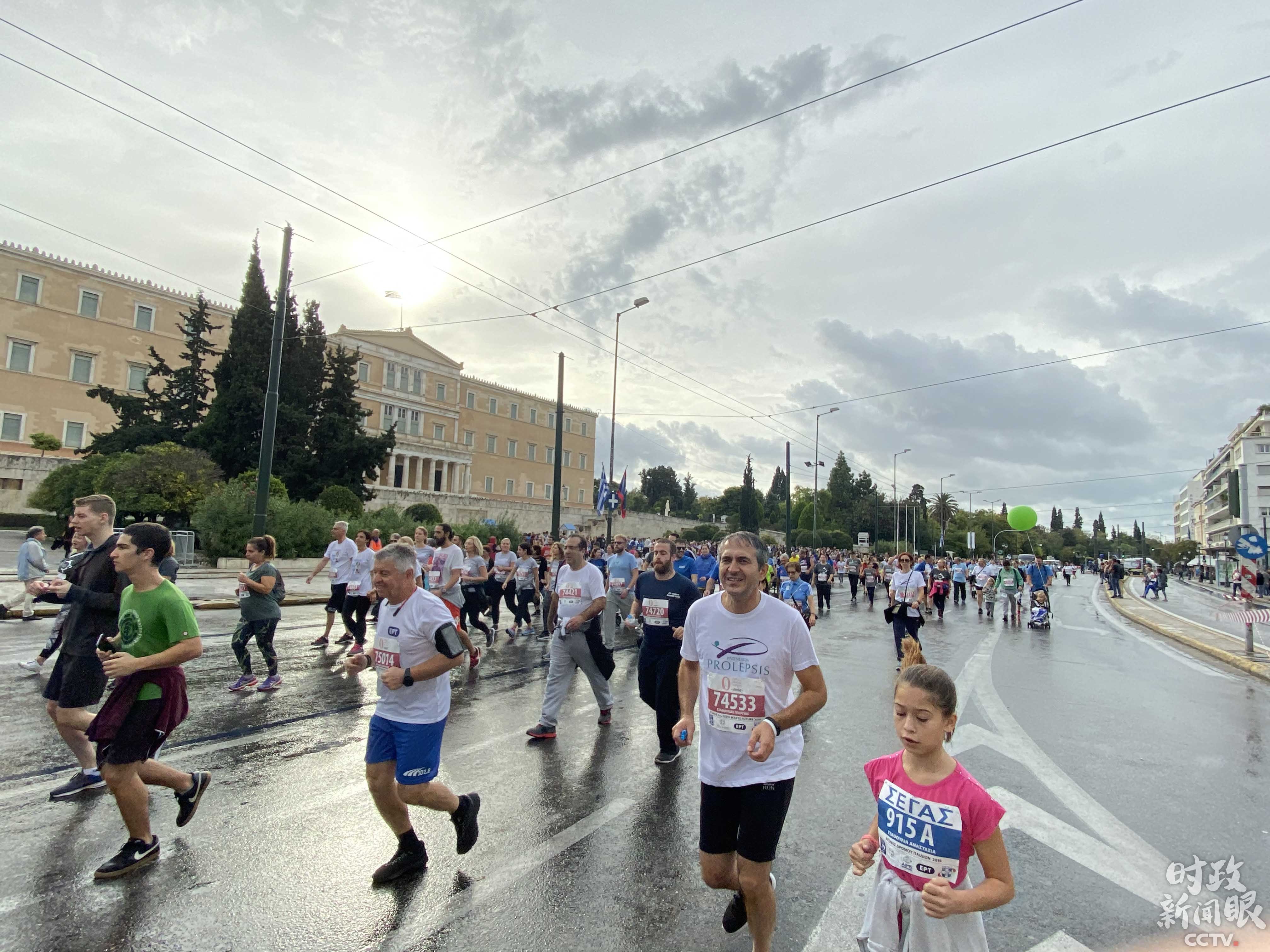 △2019雅典马拉松参赛选手跑过宪法广场。(央广记者刘会民拍摄)