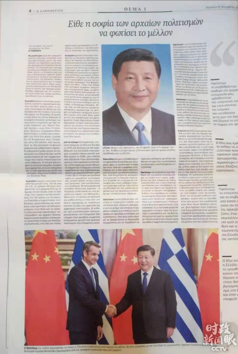 △发表在希腊《每日报》的署名文章。下方配图是11月4日会见希腊总理米佐塔基斯。(央视记者王玉国拍摄) “照鉴”之源:文明之光 交相辉映 就在习近平到访雅典这一天,2019雅典马拉松开跑。这是一场特别有穿越感的比赛。参赛者的线路是公元前490年雅典士兵菲利比斯飞奔报信的线路,是1896年、2004年两届雅典奥运会马拉松比赛的线路。这样的赛跑,是在追随着古今英雄的脚步。