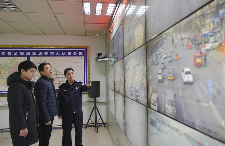 河北省宁晋县纪检干部借助公安机关交通监控系统,实时查看公车运行轨迹,严查公车私用问题(2018年12月29日摄)。 新华社记者 牟宇 摄 |