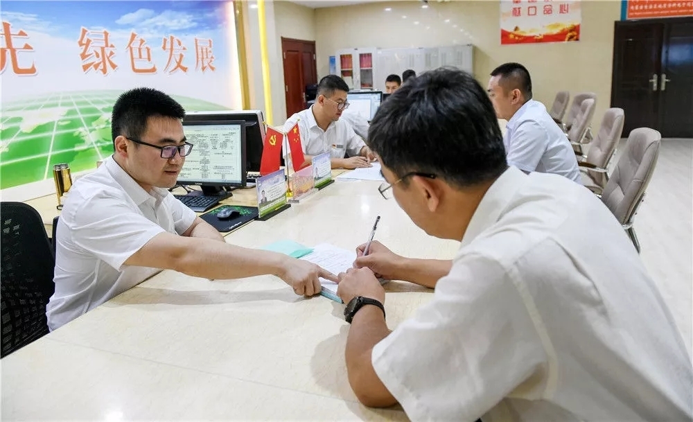 2019年7月16日,在内蒙古自治区自然资源厅的自然资源政务大厅内,办事员(左)为采矿企业办理相关审批手续。新华社记者 彭源 摄 7月中旬,内蒙古水草丰美、翠色流淌。 为推动主题教育更好开展,习近平总书记来到内蒙古进行调研指导。 “抓思想认识到位”“抓检视问题到位”“抓整改落实到位”“抓组织领导到位”; “牢记初心和使命,必须坚持一心为民”……  |