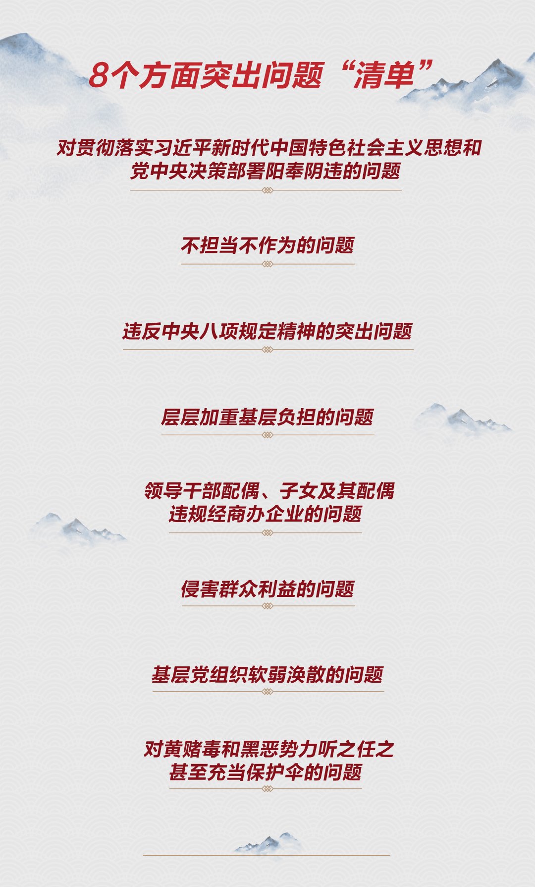 △主题教育总结大会会场,“不忘初心 牢记使命”八个字格外醒目。(国广记者李晋拍摄) 说到学习,总书记尤其语重心长:“与时俱进不要当口号喊,要真正落实到思想和行动上,不能做‘不知有汉,无论魏晋’的桃花源中人!” 第三个关键词: 直面问题 习近平在1月8日的总结大会上强调,不忘初心、牢记使命,必须以正视问题的勇气和刀刃向内的自觉不断推进党的自我革命。 去年7月,一份《关于在“不忘初心、牢记使命”主题教育中开展专项整治的通知》印发全国,列出了8个方面的突出问题。主题教育把开展专项整治作为增强实效的重要抓手,做到问题不解决不松劲、解决不彻底不放手、群众不认可不罢休。12月底,中共中央政治局“不忘初心、牢记使命”专题民主生活会指出,“突出问题专项整治成效明显”。