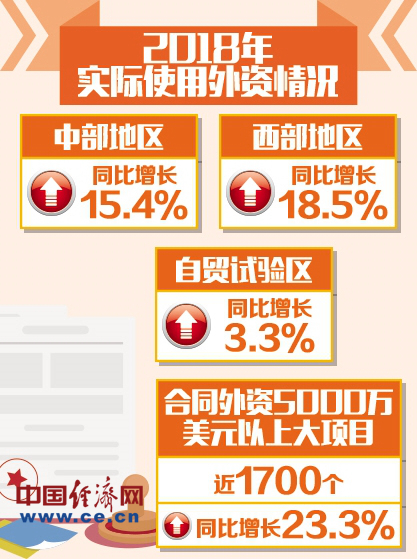 商务部外资司司长唐文弘表示,具体来看,制造业、中西部地区、外资大项目等在吸收外资方面实现快速增长,主要投资来源地实际投入增长态势良好。 制造业实现快速增长。2018年,制造业实际使用外资同比增长20.1%,占比为30.6%,较上年提高4.8个百分点。其中,高技术制造业同比增长35.1%。 中西部地区实现快速增长。2018年,中部地区实际使用外资同比增长15.4%,西部地区同比增长18.5%。自贸试验区同比增长3.3%,占比为12.1%。 外资大项目实现快速增长。2018年,合同外资5000万美元以上大项目近1700个,同比增长23.3%,显示外商对华投资信心不减。并购方式实际使用外资同比增长28.4%。 主要投资来源地实际投入增长态势良好。2018年,主要投资来源地中,新加坡、韩国、日本、英国、德国、美国实际投入金额同比分别增长8.1%、24.1%、13.6%、150.1%、79.3%和7.7%。“一带一路”沿线国家、欧盟二十八国、东盟实际投入金额同比分别增长13.2%、22.6%和13.8%。 在解析2019年吸引外资前景时,唐文弘表示,合同外资项目是吸引外资的先导指标,2018年全年合同外资大项目增长明显,说明外商对华投资信心不减。而且顺应中国高质量发展趋势以及中国更大力度开放举措的落地,中国对外资的吸引魅力不会减少。 |