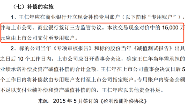 此外,时间财经发现,该业绩补偿款并无抵押,仅有1.5亿元的专用账户存款。