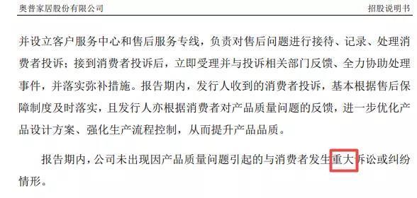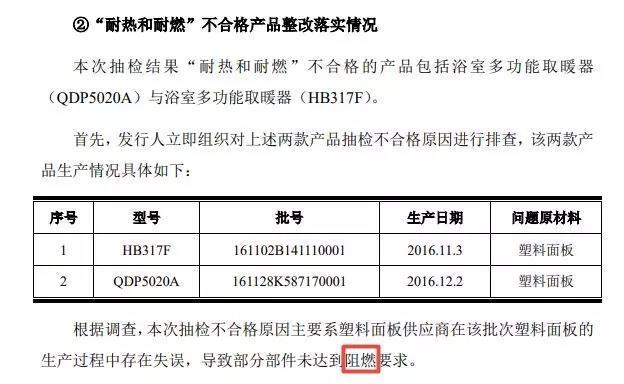 一般来说,阻燃部件不合格会造成严重后果,而且浴室取暖器是与水、电连在一起的。然而,在奥普家居的招股说明书,只提及未出现“重大诉讼和纠纷”。