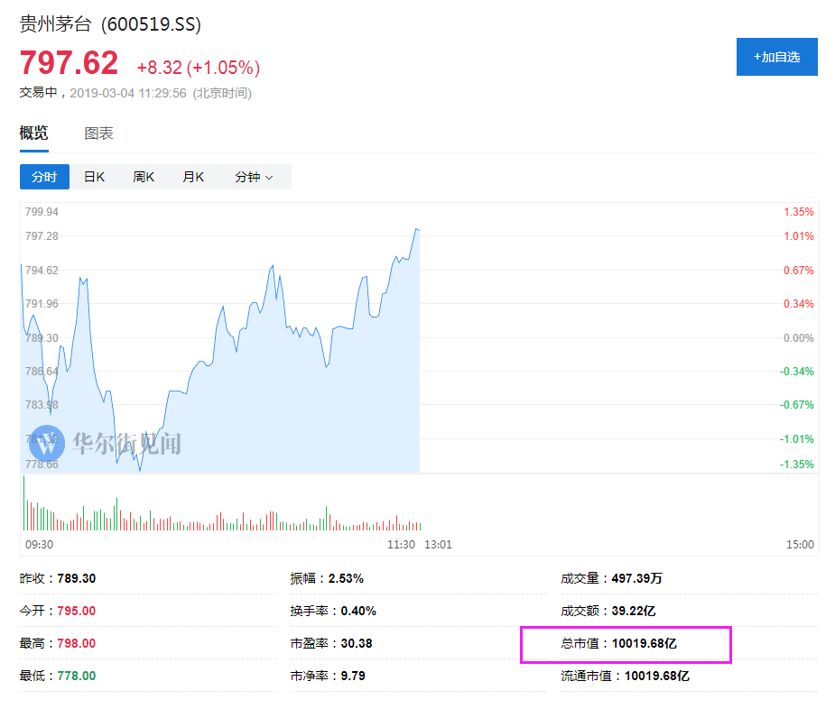 贵州茅台市值再破万亿大关,早盘成交额近40亿。中证报援引某公募基金研究员表示,去年4季度以来,北上资金持续买入白酒股,贵州茅台作为白酒龙头股自然备受青睐。从长期投资角度看,A股的一些稀缺性标的实际上是被低估的,品牌价值稀缺、业绩确定性强、分红稳定丰厚等因素都是买入贵州茅台的理由,如果未来大盘继续走强,贵州茅台有望创出历史新高。