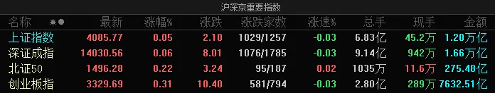 ![]() 凤凰网财经讯 1月7日,沪指微涨录得14连阳,创业板指冲高回落。截至收盘,沪指涨0.05%,深成指涨0.06%,创业板指涨0.31%。沪深两市成交额2.85万亿,较上一个交易日放量476亿,成交额连续2个交易日超2.8万亿。