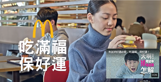 台湾“国籍”>> 台湾麦当劳“出事”了,其在台湾投放的一则广告疑有“台独”倾向,出现把广告主人公“国籍”写成“台湾”的镜头。 1月6日,台湾麦当劳在视频网站YouTube投放了一则关于“满福堡”(大陆称“麦满分”)的广告,其内容讲述三个考生因为吃了麦当劳汉堡而在考试中运气爆棚、反败为胜,主题为“要有好考运,试试吃满福,保好运!”