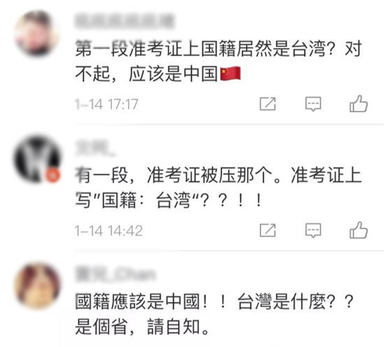 在这段广告中,镜头停留在准考证上有近2秒的时间,而准考证上有着“国籍”“台湾”的字样。广告内容公开后,引起了大陆网友的注意,有人直言,她的国籍应该是中国。 网友热议>> 还有人说,“台湾是什么?是个省,请自知”。