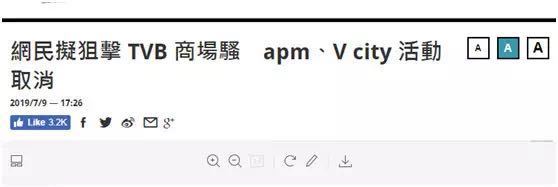 上面这样报道警方驱散示威者的是不是也算“偏向警方”呢? 在一些香港极端网民眼中,就是这样。 于是他们不仅在线上对TVB发起攻击,还在线下干扰冲击TVB的活动。 据香港媒体报道,TVB原定9日晚在香港两家购物中心的活动因有网友扬言到现场示威被迫取消。