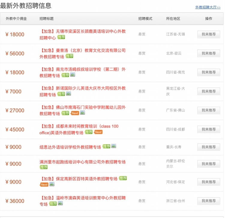“在今后工作中,将提升对教师的管理及监督,确保每位外教都能理解并遵守中国的相关法律法规政策。”在此次外教涉毒事件发生后,英孚教育青少儿英语称将加强对外教的监管。 招聘: 一半机构招聘外教无资质要求,服务对象多为未成年人 没有专门教育经历,没有获取相关教学证书甚至没有大学学历,仅凭着一口流利的英语或是所谓“native speaker”身份就进入培训机构教学的“黑外教”,实质是“无证上岗”。 南都记者从外教中介服务机构“聘外易”上看到,各地多家教育培训发布外教招聘信息并注明“加急”,要求外教越快到岗越好。