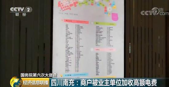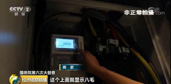 商家:这个上面就显示八毛,但是他们实际收的话,是按照一块四毛二来收的。 督查组工作人员:一块四毛二都包括什么? 商家:包括服务费。我看了下电表,电费实际是八毛一度,相当于多收了六毛二的服务费。我们这边的商家基本上都叫苦连天,这个服务费收得太高了,太不合理。 在南充市王府井购物中心,商家租用购物中心的商铺,除了租赁费和物业费之外,商家使用的电费不是自己直接交给电网,而是交给购物中心。