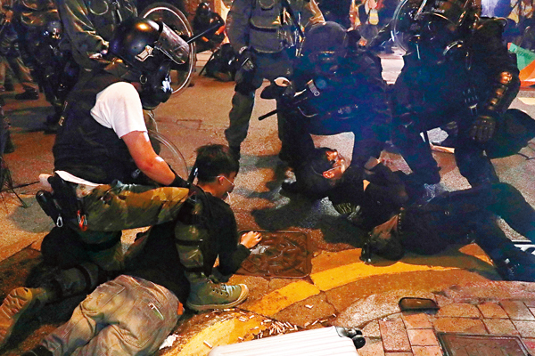 香港警方抓捕暴徒 图片来自港媒 据中新社7月29日报道,香港特区政府发言人29日凌晨作出回应指,激进示威者目无法纪,以暴力破坏社会安宁,政府予以强烈谴责。 发言人指出,自28日下午开始有市民在港岛不同地区进行未经批准的集结,其中在上环及西环一带有激进示威者作出暴力行为,包括向警务人员掷砖、纵火,甚至以载有燃烧中纸皮的手推车推向警方防线,对警务人员以至其他市民构成危险。 发言人表示,激进示威者目无法纪,以暴力破坏社会安宁,特区政府予以强烈谴责,会继续全力支持警队严正执法,遏止所有暴力行为,尽快回复社会秩序。  |
