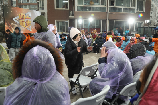 《向前一步》节目组在风雨中坚持录制 《向前一步》录制环境几乎都在室外,节目组承受了常人根本无法想象的艰辛!他们遇见过八级大风,每个灯杆、架子都要4个人抱着才不会被吹倒,但他们捍卫法律与政策的决心始终屹立不倒;他们经受过瓢泼大雨,现场的每个人都穿着不同颜色的雨衣,仿佛是彼此观点的碰撞与包容,但最终都会迎来雨后彩虹。