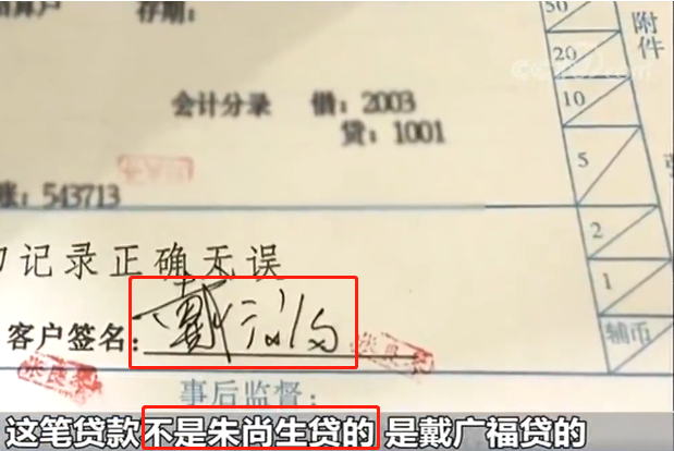 原石店镇信用社副主任 刘巨华:真实讲我是没有去。为啥呢,这个经手都有信贷员操作,我这是审查,放上一个星期,办出来,我就签个字。 原石店镇信用社主任 许东平:我那时候在干主任。我就都是责任人嘛。我们当时职责也不太细致,也没有通过了解啥的。 围绕这笔贷款的三个主要核查人员都说别人该去核实。记者深入查找银行提供的资料时,一个在贷款资料中从未出现过的名字——戴广福,却出现在了取款人的信息里。 原石店镇信用社主任 许东平:这笔贷款不是朱尚生贷的,是戴广福贷的。 记者:咱们什么时候知道贷款的是戴广福? 原石店镇信用社主任许东平:催取利息的时候。 记者:那是哪年? 原石店镇信用社主任许东平:2014年底。 记者:朱尚生的贷款记录为什么没有修改呢? 原石店镇信用社主任许东平:戴广福2015年就出事了,就逮起来了。 记者:戴广福是不是逮起来,和朱尚生的贷款记录能不能修改,有什么关系?有关系吗? 原石店镇信用社主任许东平:这个,关键是戴广福必须本人到场。他借用朱尚生的名字。