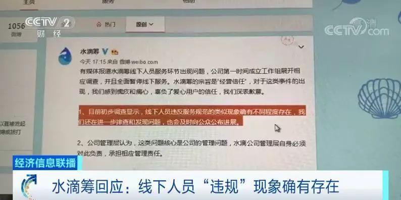 12月2日下午5点15分,水滴筹在官方微博发出公告:针对有媒体报道水滴筹线下人员服务环节出现问题,已全面暂停线下服务。水滴筹承认,其线下人员违反服务规范的类似现象确有不同程度存在。对此,很多人表示,水滴筹的做法损害了大家善心。