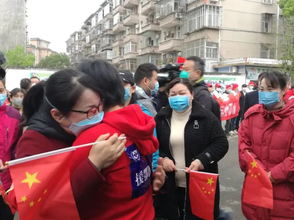 鄂州市中心医院门口,相隔50多天的合影 ![]() 当地百姓与医疗队队员依依惜别