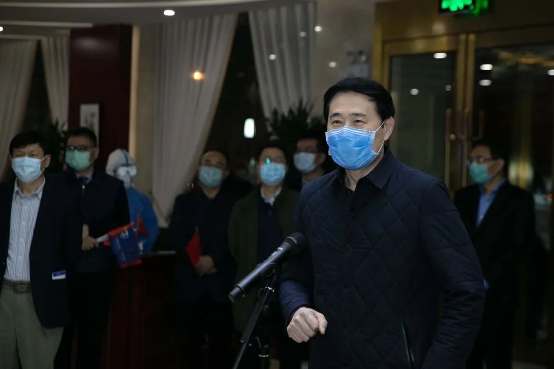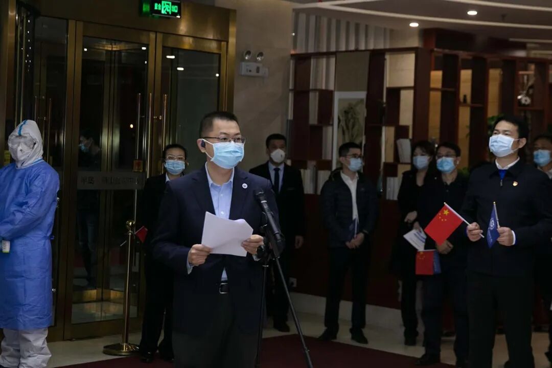 刘玉村书记叮嘱医疗队员在接下来集中隔离的这段时间中,既要好好休息调整,也不要放弃通过疫情防控工作,观察世界、感悟人生,并向大家赠送了北大的礼物。一件印有北京大学、北大医学字样的纪念服装,和两本精心挑选的书籍——《习近平的七年知青岁月》《平凡的世界》。刘玉村勉励大家,认真学习总书记在疫情防控期间先后给正在北京大学首钢医院实习的西藏大学医学院学生和北京大学援鄂医疗队全体“90后”党员两封重要回信精神,从领袖的成长经历中,汲取个人奋斗的宝贵经验。立足平凡的工作岗位,认真体会世界百年未有之大变局。身在北大,心系国家、民族和世界,结合所从事的医疗工作,为构建人类命运共同体、人类卫生健康共同体继续努力奋斗。 北京大学党委常务副书记、 医学部党委书记刘玉村讲话 北大医疗产业集团党委副书记 兼副总裁范晶主持 自2月6日驰援湖北以来,北京大学国际医院援鄂医疗队同鄂州人民守望相助,共克时艰。抗疫期间,得到了国务院孙春兰副总理、中央指导组王贺胜主任等领导人的深切关怀,得到了当地政府部门的高度评价,与鄂州同行建立了深厚的情谊,获得百姓的一致认可,20名医务人员被授予鄂州市荣誉市民称号。