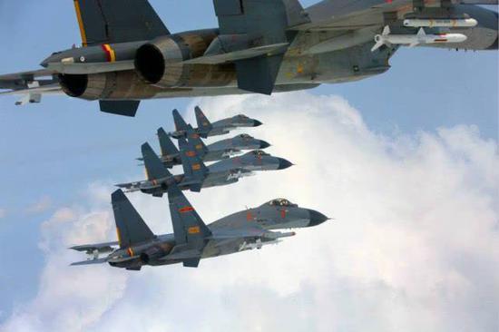 我军歼-11 台媒称,美舰进入海峡后,起飞MH-60直升机担任空中警戒任务,并飞在海峡中线以西空域,很快遭到解放军歼-11战机警告,被迫飞到海峡中线以东,随后苏-30接替歼-11持续保持空中警戒,另有“翔龙”无人机加入监控,据称,在美舰过海峡的9个小时中,解放军持续出动高达10多个架次的军机,对美舰进行警戒监视,力度空前。