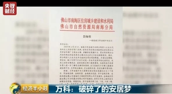 《情况说明》 7月5日,万科金域中央的业主收到了由佛山市南海区住房城乡建设和水利局与佛山市自然资源局南海分局联合发出的告知书,表示市场监管部门已经介入调查佛山市万科置业有限公司的虚假宣传广告行为。