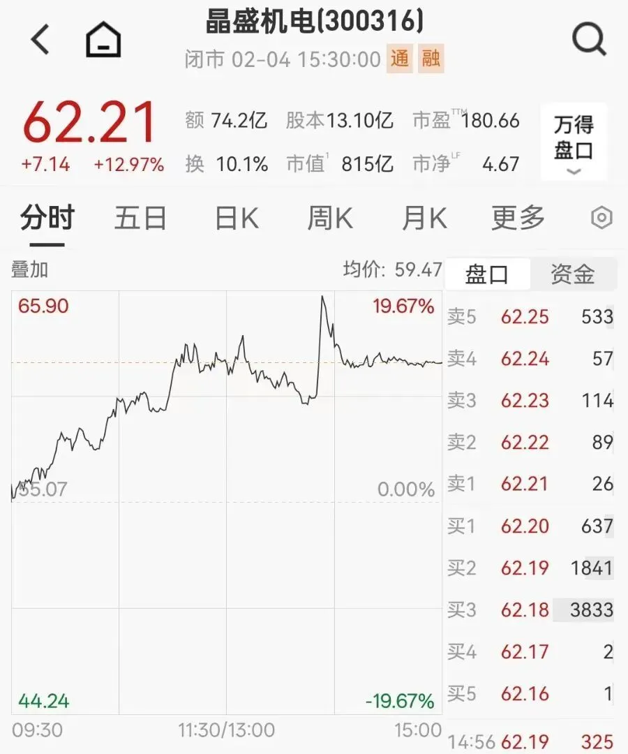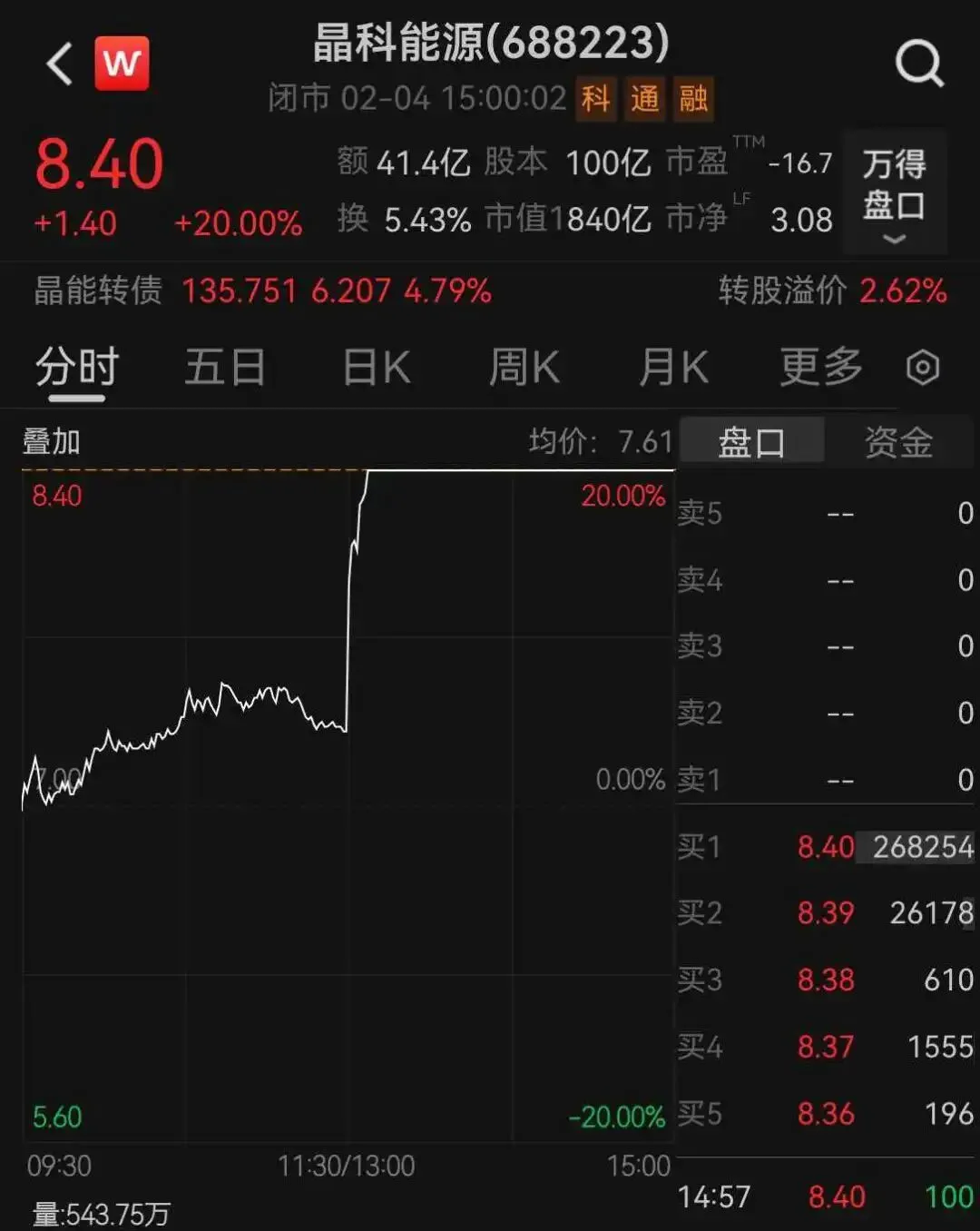 此外,晶科能源表示,公司关注到近期资本市场对“太空光伏”等概念关注度较高,相关板块二级市场表现较为活跃。目前“太空光伏”尚处技术初步探索阶段,产业化进程受技术发展、行业政策、市场环境等多方面因素影响,未来技术应用与产业化落地仍需要一定的时间周期。 截至目前,公司主营业务产品仍聚焦于地面光伏领域,公司未有涉及“太空光伏”的订单收入,未对公司经营业绩造成影响,请投资者注意理性判断。 2月4日午后,光伏板块冲高,太空光伏方向强势领涨,晶科能源迅速拉出20%涨停。