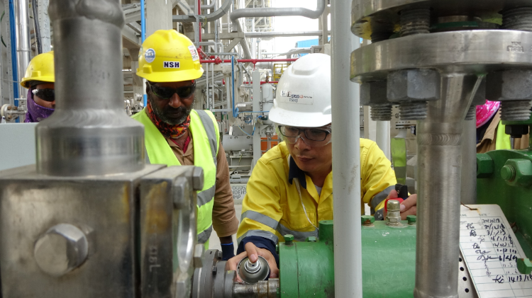 中方工程师在进行电机维护 据介绍,中国石化坚持自主创新,已拥有世界先进水平和领先水平的炼油、乙烯、芳烃成套技术,拥有依靠自主技术建设千万吨级炼油厂、百万吨级乙烯装置和百万吨级芳烃装置的能力。2016年1月,中国石化首个海外炼化项目——沙特延布炼厂正式投产。2017年6月,中国石化又承建哈萨克斯坦阿特劳炼厂升级项目试运行。