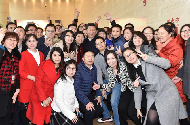 ![]() 人民日报推出融媒体工作室机制,组建了“一本政经”“麻辣财经”“大江东”等45个专业化、垂直化的品牌工作室;新华社自主研发推出“快笔小新”机器人写稿系统,并发布全球媒体首个人工智能平台——“媒体大脑”和全球首个合成新闻主播——“AI合成主播”;中央广播电视总台以先进技术为引领,深入研究运用人工智能、5G网络、大数据、云计算等新技术,全力推进4K超高清电视技术体系建设,牢牢掌握核心技术研发应用主动权,努力实现跨越式发展;中国日报社践行“深度融合、移动先行”理念,把一份发行70万份的英文报纸转型升级为一个覆盖2亿多海内外用户的全媒体传播平台…… 在全媒体时代浪潮中,一个传播力、引导力、影响力、公信力不断提升的新型主流媒体矩阵正不断成长壮大,写下媒体融合发展的“中国答卷”。 深情寄望 媒体融合发展,关键在人的融合。 3年前的2月19日,习近平到人民日报社、新华社、中央电视台3家中央新闻单位实地调研,并主持召开党的新闻舆论工作座谈会。会上,他用一席情真意挚的讲话,为广大新闻工作者提供了根本遵循和前进方向。一句“勤学习、多锻炼,努力成为全媒型、专家型人才”,让新闻工作者深刻体会到总书记的殷切期望…… 从召开座谈会与新闻工作者面对面交流,到深入新闻生产一线了解实际情况,再到发贺信温暖鼓励从业人员,习近平关心全媒体浪潮之下新闻工作者的成长与进步,对大家提出了更严的要求和更高的期待。 政治上,习近平提醒大家“在围绕中心、服务大局中找准坐标定位,牢记社会责任”; 业务上,习近平勉励大家朝着新目标不断努力,“不断增强脚力、眼力、脑力、笔力”“做业务精湛的新闻工作者”“要解决好‘本领恐慌’问题,真正成为运用现代传媒新手段新方法的行家里手”; 作风上,习近平告诫大家严格要求自己,“扑下身子、沉下心来,扎根基层”,“察实情、说实话、动真情,努力推出有思想、有温度、有品质的作品”; ……