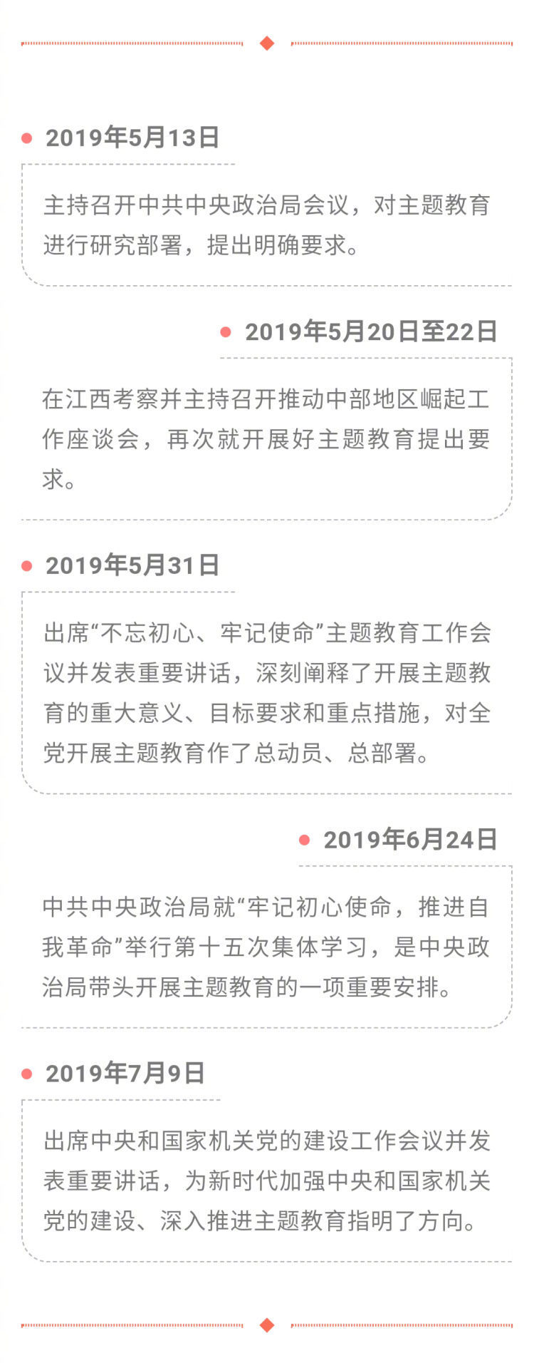 就在主题教育启动前的5月20日,总书记前往江西于都重温初心,就开展好主题教育提出要求。 接连两次地方考察,都强调这一主题,可见主题教育在总书记心目中的分量有多重。