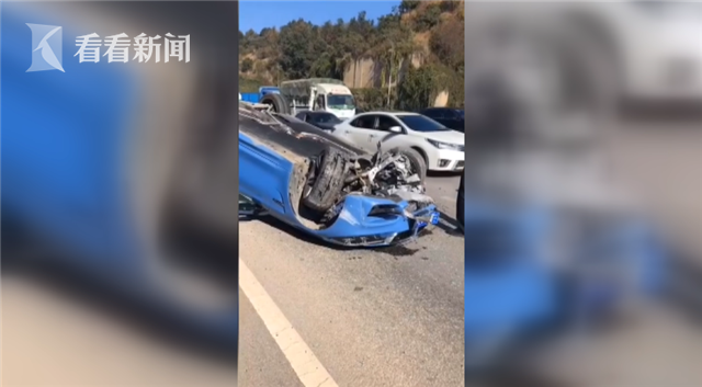 不过在这段视频拍摄一小时后,这辆车因车祸在东三环被市民拍到。现场视频显示,该跑车就这么四轮朝天地翻在上坡路上,两个前轮被撞毁,发动机看起来受损严重,后备箱盖也大开着。据当地交警表示,此事属于单车事故,无人员伤亡。
