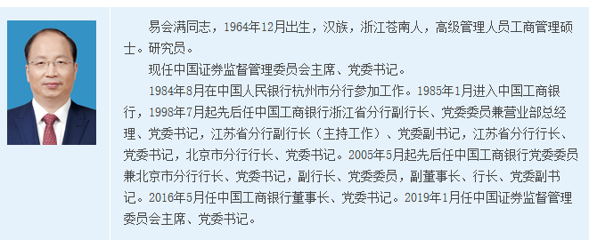 证监会新任主席易会满的公开首秀备受关注。 根据国务院新闻办公室公告,易会满将于2月27日(星期三)15时30分出席新闻发布会。出席会议的还有证监会副主席李超、方星海,以及上海证券交易所理事长黄红元。本次发布会将主要介绍设立科创板并试点注册制,同时,就进一步促进资本市场稳定健康发展的有关情况答记者问。 易会满履职“满月”,大盘涨13% 自1月26日接棒刘士余正式上任证监会主席,易会满在这一新职位上履职刚刚“满月”。