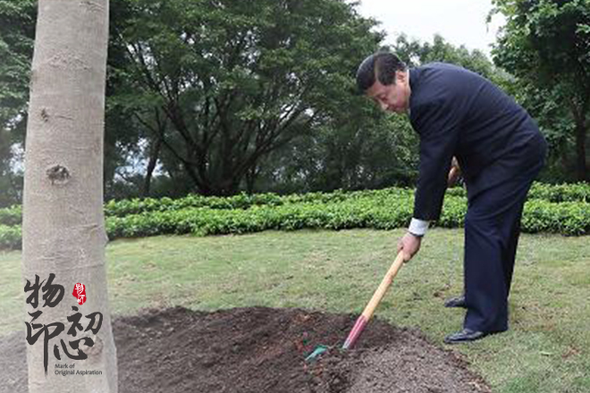 2012年12月7日至11日,习近平在广东省考察工作。这是习近平在深圳莲花山公园种下一棵高山榕树。 沿着莲花山公园山顶广场下行不足百米,有一个小广场,广场南角有一块40多平方米的草皮,就在这块草皮的中间位置,习近平亲手种下了一棵胸径约15厘米、高2米多的直干高山榕。 那天,他还登上莲花山山顶,向邓小平铜像敬献了花篮,并俯瞰深圳全貌。 这里是中国改革开放的标志性城市;那天是习近平当选总书记后的第24天。 习近平离开深圳后又考察了珠海、佛山、广州。这条路线正是邓小平在1992年视察南方时走过的。 20年前,邓小平亲手植下的高山榕,见证了这20年来改革开放的历史进程;20年后,循着先辈的足迹,习近平发出新的改革动员令:“之所以到广东来,就是要到在我国改革开放中得风气之先的地方,现场回顾我国改革开放的历史进程,将改革开放继续推向前进。” 这初心正与高山榕那坚韧顽强、奋发向上的精神相呼应。 早在福州工作时,习近平就曾在一篇文章中这样总结榕树精神,“具有顽强的生命力,多么贫瘠的土地,乃至乱石破崖,它都能破土而出,盘根错节,傲首云天”。 中国改革开放以来,并非一帆风顺、一蹴而就,经历过困惑与曲折,也遇到过无数艰难。但正是由于百折不挠的顽强精神,“敢于啃硬骨头、敢于涉险滩”的决心和韧劲,我们才取得了如今“傲首云天”的成就。