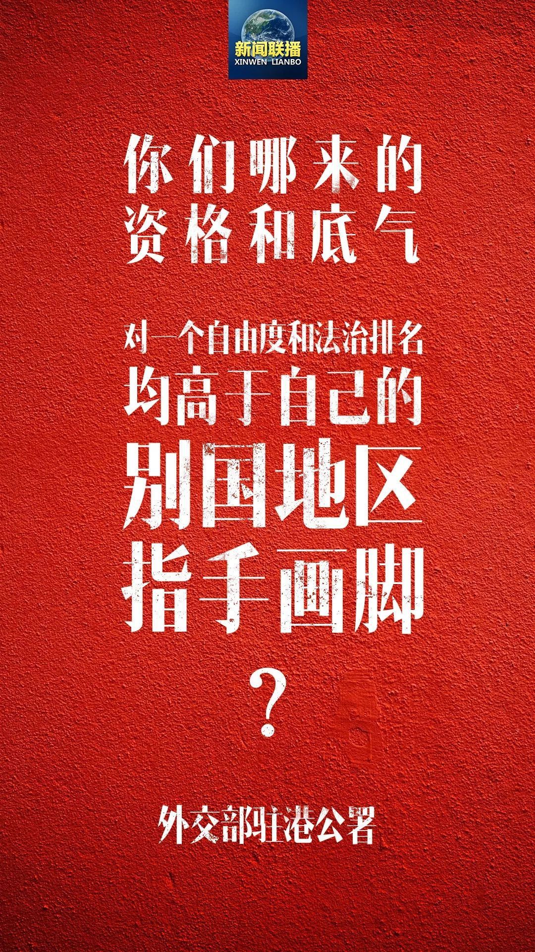 外交部驻港公署:美方打“香港牌”绝不会得逞 外交部驻港公署16日发表声明指出,美国一些政客将自己摆在“法官”和“教师爷”的位置上,对香港事务和中国内政大放厥词,对中国中央政府和特区政府抹黑诋毁。我们不禁要问:你们哪来的资格和底气,对一个自由度和法治排名均高于自己的别国地区指手画脚?你们对美国国内处置示威活动充分授权、毫不手软,却对香港警方极度克制执法、依法维护法治横加指责,这不是双重标准又是什么?