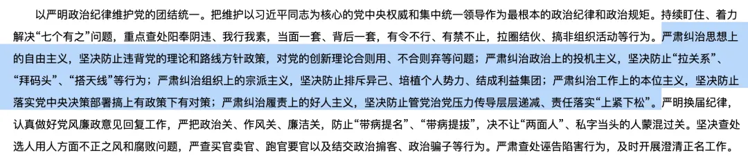 工作报告共分为三部分,分别是: 2025年工作回顾 以纪检监察工作高质量发展新成效为实现“十五五”时期目标任务提供坚强保障 2026年主要工作 几个细节值得关注。 第一,重点查处这些行为。 二十届中央纪委已召开五次全会,时间分别是在2022年10月23日、2023年1月9日至10日、2024年1月8日至10日、2025年1月6日至8日和2026年1月12日至14日。 在历次全会上中央纪委书记所作的工作报告,“政治监督”都是关键词。 政治监督,在党内监督中处于根本和统领地位,其根本指向就是“两个维护”,要确保党的理论和路线方针政策、党中央重大决策部署不折不扣落地生根。 强化政治监督,是纪检监察机关重大政治责任。 今年是“十五五”开局之年,各项战略任务和重大举措正渐次展开。而落实的关键之一,就在于强有力的政治监督。另外,今年地方还将开始换届,习近平总书记要求“把真正忠诚可靠、表里如一、担当尽责的好干部用起来”。 今年中央纪委书记的工作报告提到,持续盯住、着力解决“七个有之”问题,重点查处阳奉阴违、我行我素,当面一套、背后一套,有令不行、有禁不止,拉圈结伙、搞非组织活动等行为。 什么是“七个有之”? 在十八届四中全会上,习近平总书记明确指出: 一些人无视党的政治纪律和政治规矩,为了自己的所谓仕途,为了自己的所谓影响力,搞任人唯亲、排斥异己的有之,搞团团伙伙、拉帮结派的有之,搞匿名诬告、制造谣言的有之,搞收买人心、拉动选票的有之,搞封官许愿、弹冠相庆的有之,搞自行其是、阳奉阴违的有之,搞尾大不掉、妄议中央的也有之。 此次工作报告还特别提到,“重点查处阳奉阴违、我行我素,当面一套、背后一套,有令不行、有禁不止,拉圈结伙、搞非组织活动等行为”。 与之前的几次报告相比,这是首次提到。 另外,此前公布的二十届中央纪委五次全会公报,曾首次提到严肃纠治五个“主义”,即严肃纠治思想上的自由主义、政治上的投机主义、组织上的宗派主义、工作上的本位主义、履责上的好人主义。 在中央纪委书记的工作报告中,也提到了严肃纠治五个“主义”,并首次进行了详细阐述: