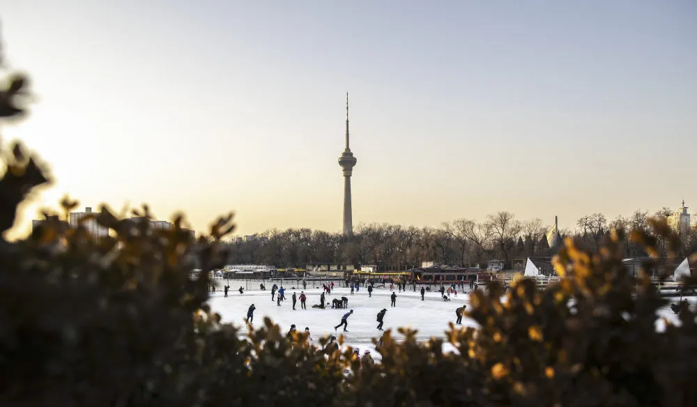 2021年1月30日,市民在北京玉渊潭公园一处冰场内滑冰。新华社记者李明摄