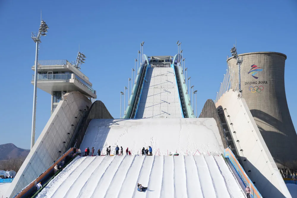 2023年1月15日,游客在北京首钢滑雪大跳台体验“雪圈冲浪”。新华社记者鞠焕宗摄