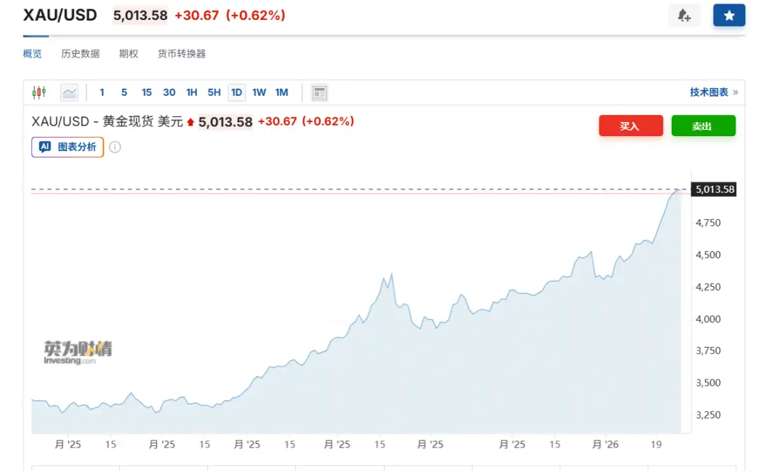 ![]() 1月26日,现货黄金首次突破5000美元/盎司。